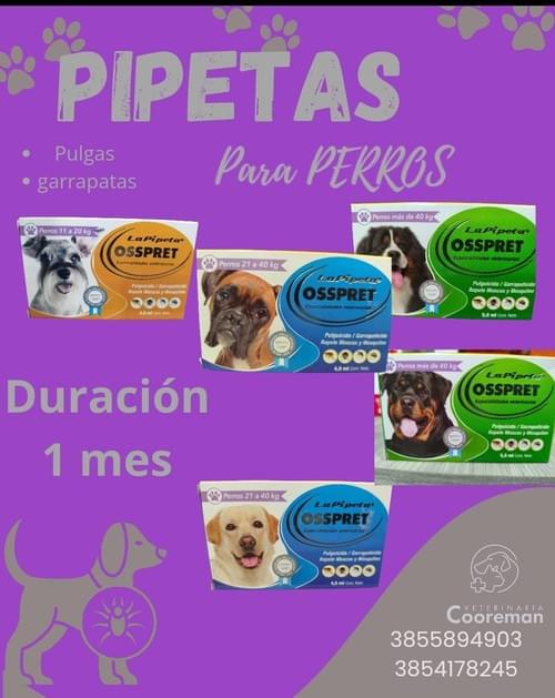 Pipetas contra pulgas y garrapatas para perros.